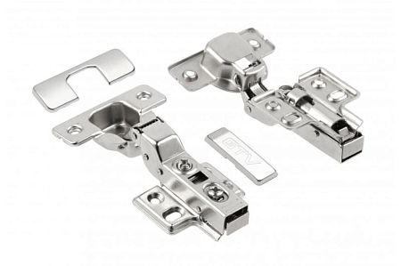 Петля (набор 2шт) GTV Clip-On полунакладная 102°, с широкой монт. планкой H0, декор. накладки, с доводчиком