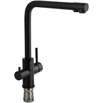 Смеситель д/кухни Г-обр. гусак Magnus с краном питьевой воды. из нерж. стали марки 304, черный 91120