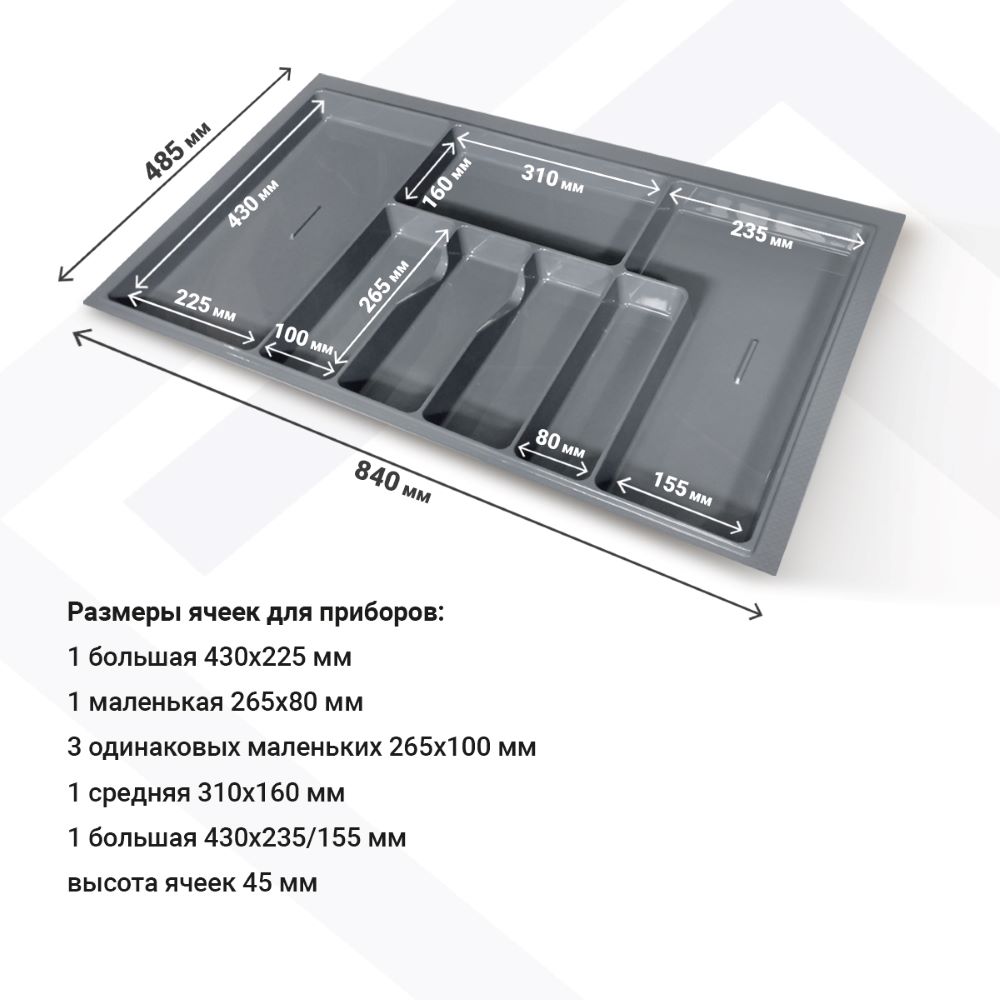 Лоток для столовых приборов М900мм, 840х485мм, серый