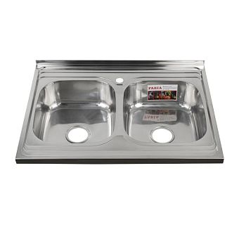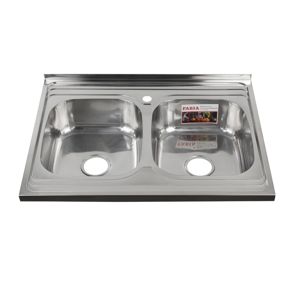 Накладная мойка FABIA с двумя чашами из нержавеющей стали отличный вариант для кухни, она прослужит многие годы. Классическая форма и хромированный цвет гармонично впишутся в любой интерьер и никогда не выйдут из моды. Оптимальный размер позволяет свободно мыть посуду, без страха её разбить. Мойка устанавливается на тумбочку. Практичная площадка, расположенная по центру, даёт возможность вмонтировать любую понравившуюся модель смесителя. В комплекте двойной сифон с переливом. Габаритные размеры: ширина 600 мм, длина 800 мм, глубина 160 мм, толщина стали 0,6 мм. Вес - 4,900 кг, объём - 0,03921 м3.