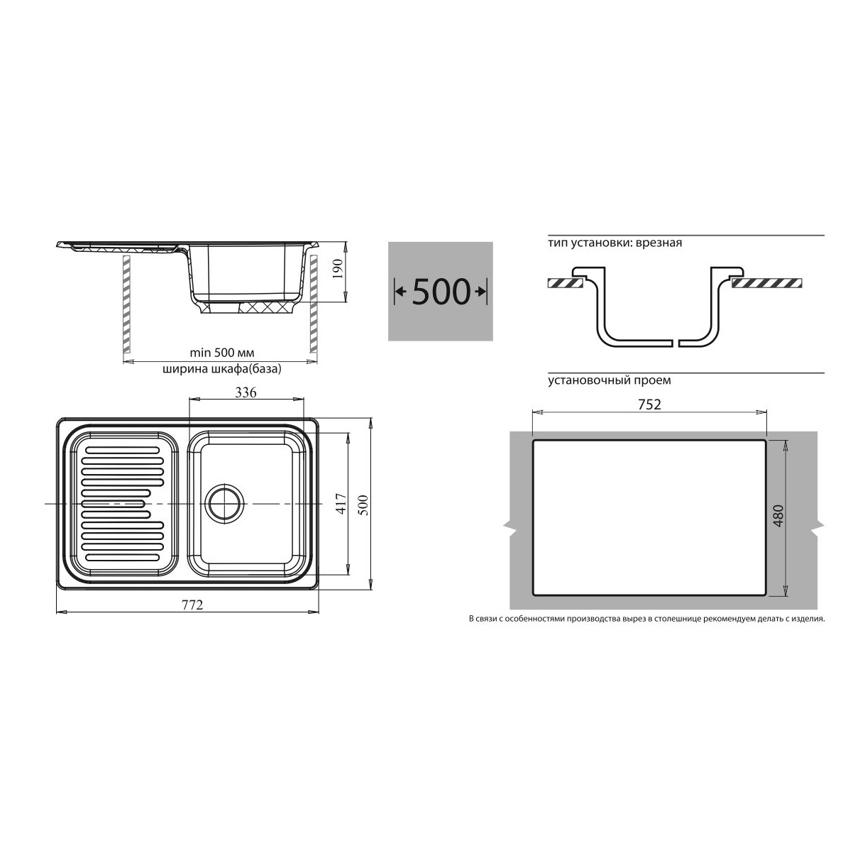 Общий размер мойки