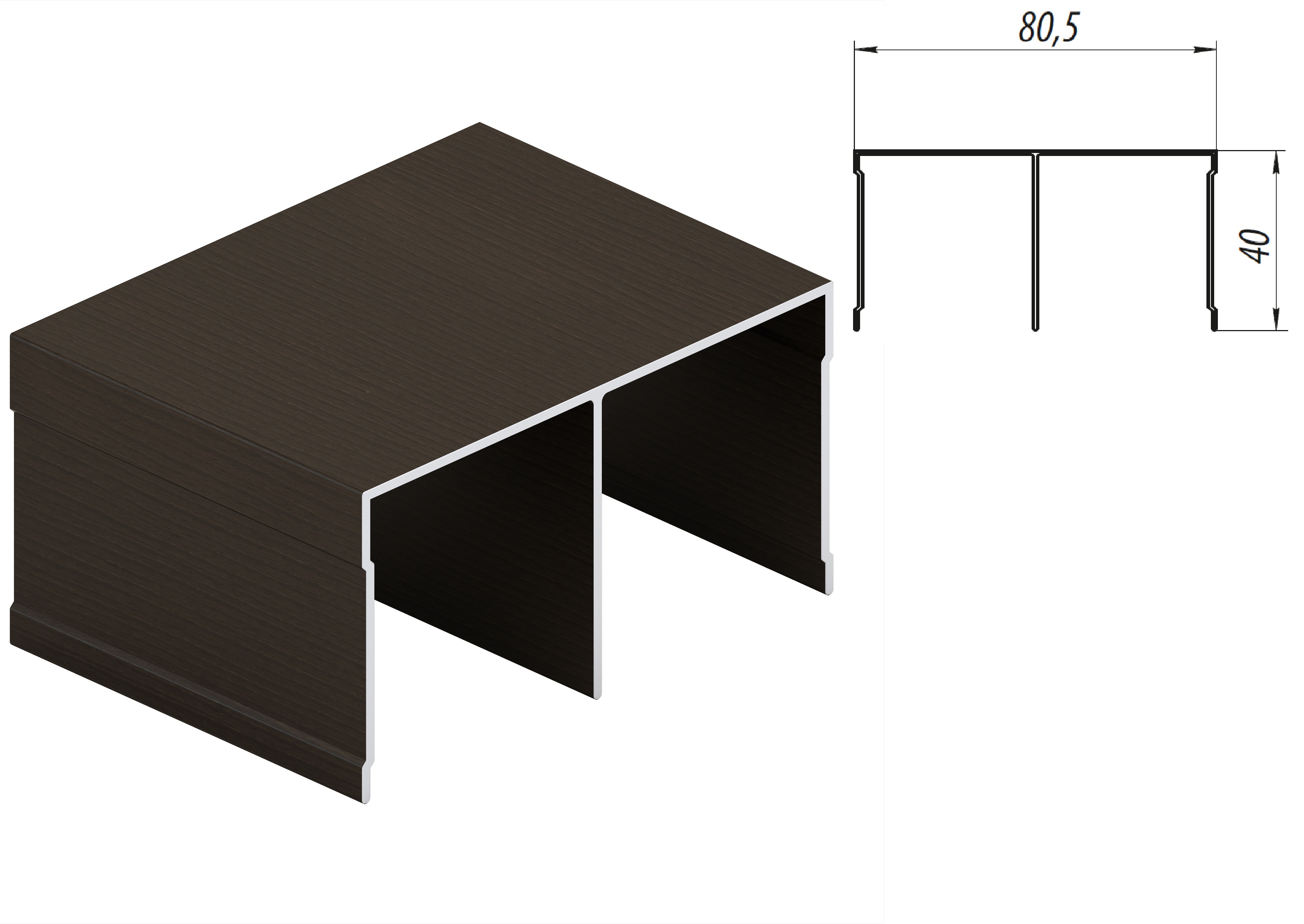 Направляющий профиль для шкафов-купе. Закрепляется с помощью шурупов к нижней поверхности потолка шкафа. Служит в качестве направляющей для верхней части двери.