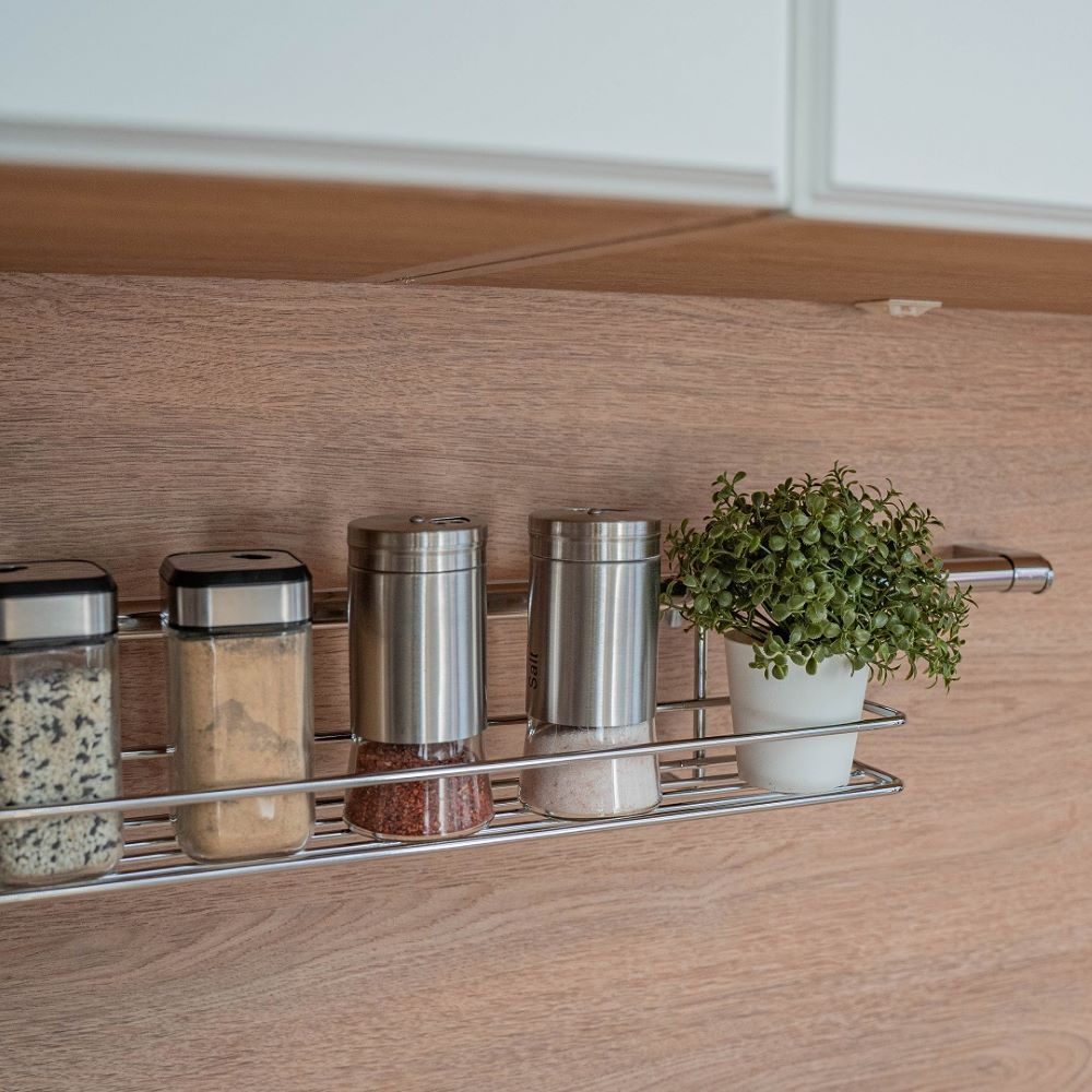 Полочка позволяет эффективно использовать пространство на стене, освобождая рабочую поверхность. Узкая полочка идеальна для соусов и специй.