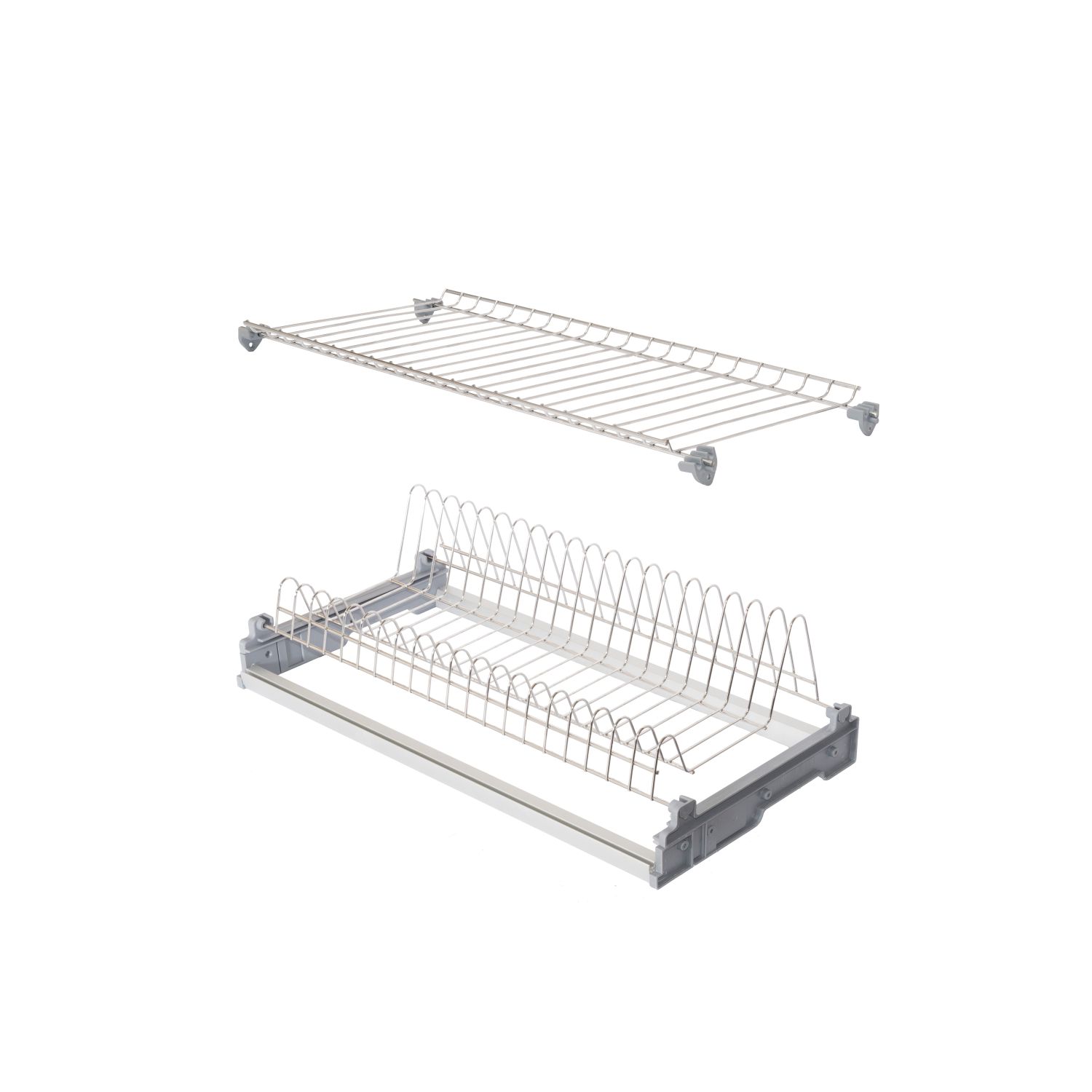 Предназначен для монтажа в шкаф кухонного гарнитура. В комплект входят: держатель тарелок и полка для сушки чашек и бокалов ИЗ НЕРЖАВЕЮЩЕЙ СТАЛИ, поддон-накопитель для стекающей воды, крепежные элементы и два алюминиевых профиля, позволяющих осуществлять монтаж изделия в шкафчики без дна, сохраняя жесткость конструкции.