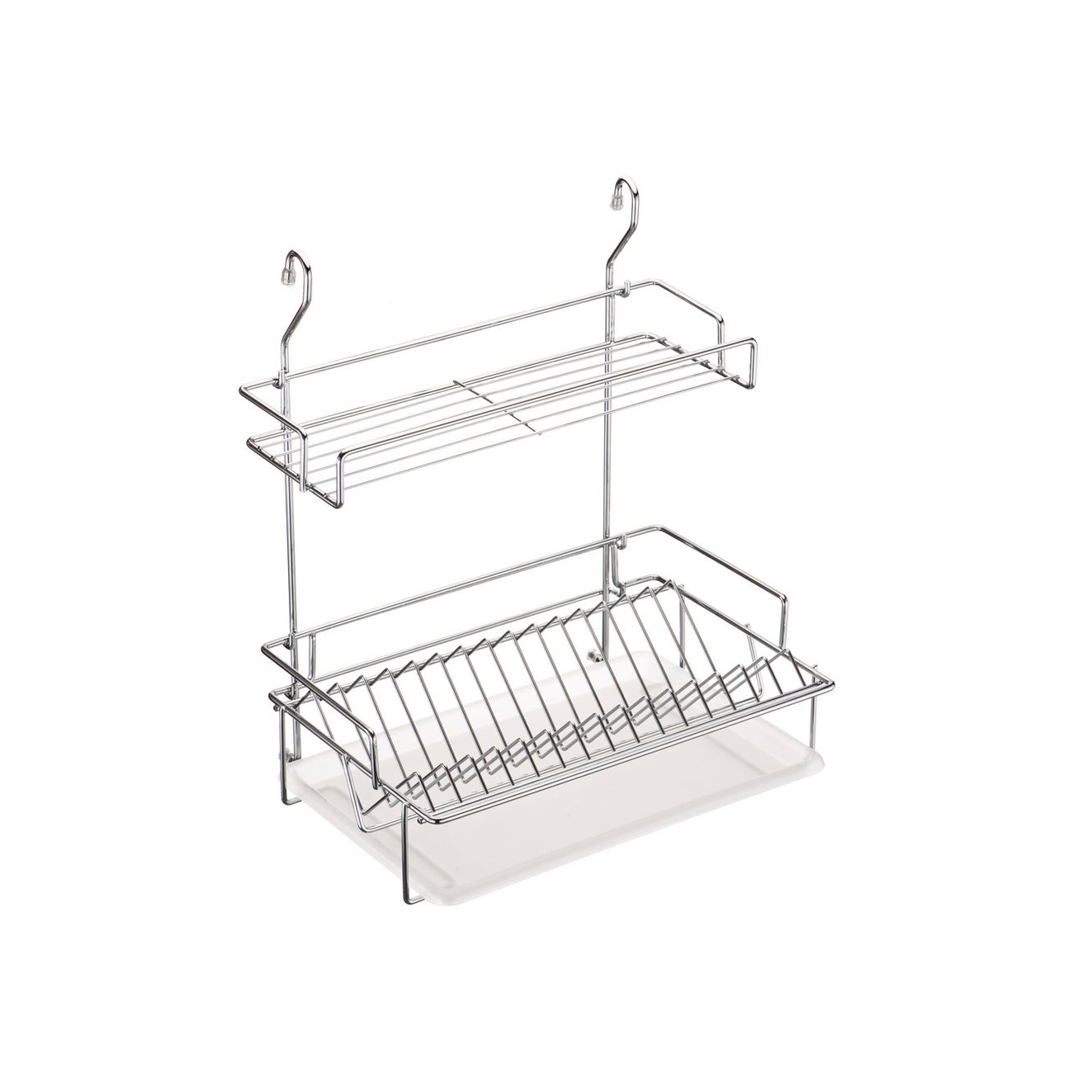 Двухъярусная сушка для посуды Lemax. Выполнена из нержавеющей стали, оснащена поддоном. Позволяет использовать пространство на стене для хранения чашек и тарелок, освобождая рабочую поверхность. Легко и надежно вешается на трубу рейлинга. Не боится влажности и сохранит идеальный вид на долгие годы.