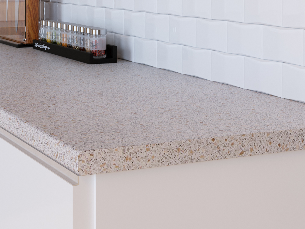 Столешница 3050x600x40 1U 0446 Гранитная крошка //1 обладает влагостойким слоем, который обеспечивает надежную защиту от разбухания столешницы при частом контакте с водой, благодаря качественной герметизации. Столешницы устойчивы к различным бытовым химиям, чернилам, пищевым кислотам и ультрафиолетовому излучению, что сохраняет их внешний вид и функциональность. Также они обладают высокой стойкостью к механическим повреждениям, таким как царапины и сколы и выдерживают высокие температуры без образования следов от горячей посуды.